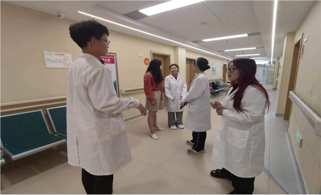 图为成员们在医院接受培训并与进行医生诊疗前交流