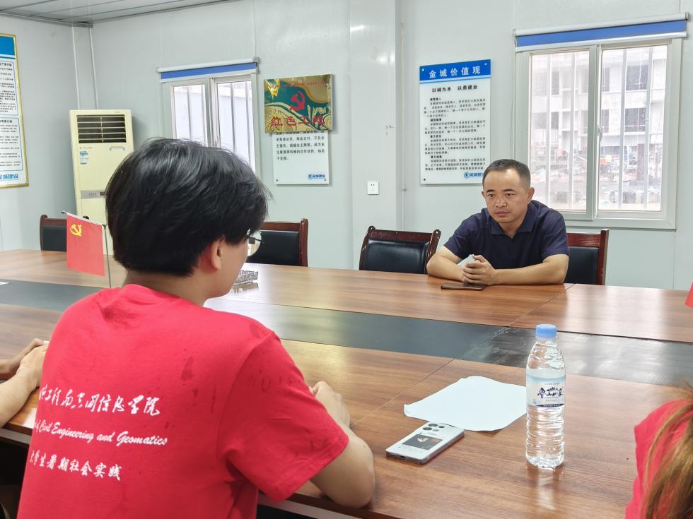 实践团成员首先与工地负责人见面并与之相互交流,成员们争相提出自己的问题,了解工人及建筑工程行业的现状,负责人对此进行了细致地介绍。建筑业作为国民经济的重要支柱产业之一,为城市的快速发展做出了巨大贡献。然而,建筑工人们在艰苦的工作环境中默默付出,往往面临着诸多挑战。尤其是近几年建筑行业发展艰难而缓慢,由此建筑工人的生活也愈加不易。