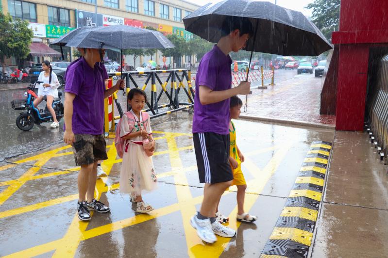 清晨,天空飘起了细雨,但这丝毫没有影响我们的心情。反而,我们更加兴奋,因为这给了我们一个特别的机会,去展现实践团的温暖与关怀。我们撑起彩色的雨伞,站在校门口,等待着每一个孩子的到来。每接到一位小学生,我们都亲切地问候,小心翼翼地护送他们进入教室,确保他们不会被雨水淋湿。孩子们的眼神中闪烁着惊喜与感激,这份简单而真挚的互动,瞬间拉近了我们与孩子们的距离。