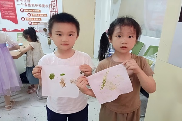 活动接近尾声时,孩子们纷纷展示自己的拓染成果,每一件作品都独具匠心,充满着孩子们对自然之美的独特诠释。这些作品将被孩子们带回家,作为珍贵的礼物献给家人,同时也是他们与中国传统文化亲密接触的见证。