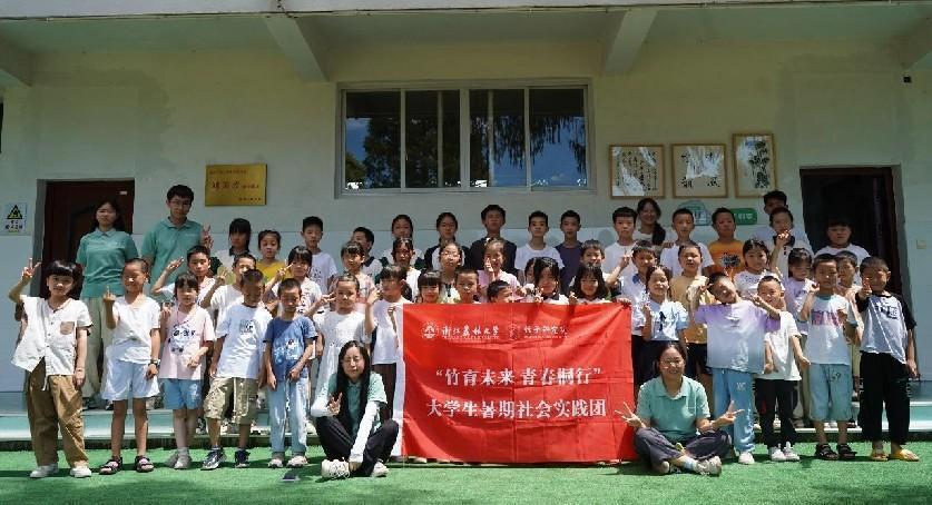 蝉鸣七月,万物葱茏。由本硕博学生共同组成的“竹育未来 青春桐行”暑期社会实践团历经三个多小时的车程,抵达了桐村镇中心小学,为乡村留守儿童带去“竹之问:竹子生物育种科技”“竹之用:竹林碳汇科技”“竹之韵:中华文化的代表元素”等竹主题研学课程,让竹文化和竹知识融入到乡村青少年的生态文明教育中去。