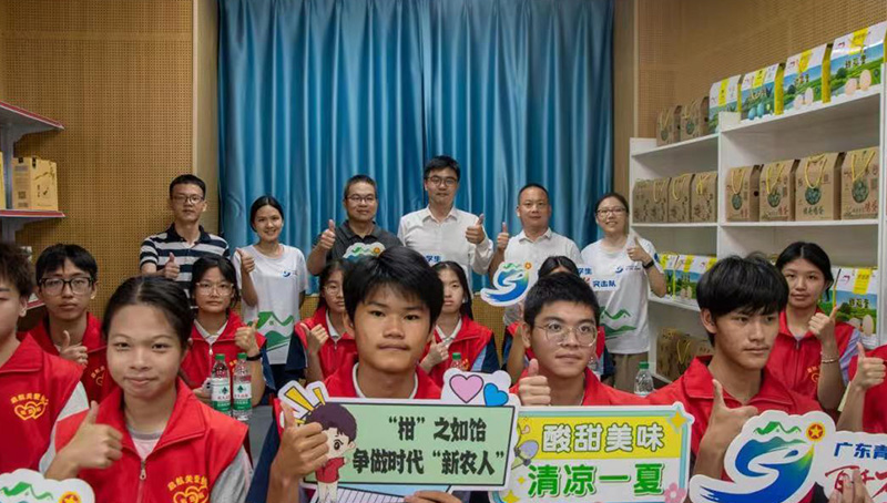 晚上,实践团成员们迎来了此次社会实践活动的重头戏——最后一次直播。在直播过程中,不仅有实践团成员的精彩表现,还特别邀请了“双百行动”驻陆河服务队雷聪聪队长、陆河职校彭永碧校长,陆河县新能源技工学校曹仁渐校长、陆河职校范铮帆老师,陆河县当地学生志愿者参与其中。直播内容涵盖了油柑汁的品牌故事、产品介绍以及社会实践的心得体会。通过直播,实践团成员们将他们的所见所感,以及对当地农业和文化的深刻理解,传递给了更多的观众。