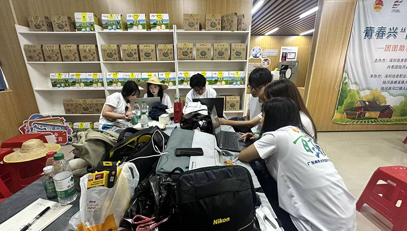 随后,实践团部分成员结束了调研赶回了陆河职校的直播室,和实践团的所有成员会合,一起准备商量直播的各项事宜以及充分的准备更加完美的直播内容,样品内容的设计,以及直播脚本的理解,大家都在共同的商量和热议,并且与陆河职校的学生们共同合作,共同成长,期待在直播间与观众粉丝们相遇,共同创造美好回忆,共同打响陆河农产品的特色!
