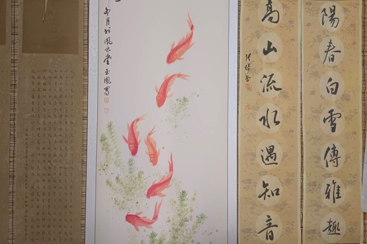 蒲松龄故居中的挂画(宋泽鑫摄)