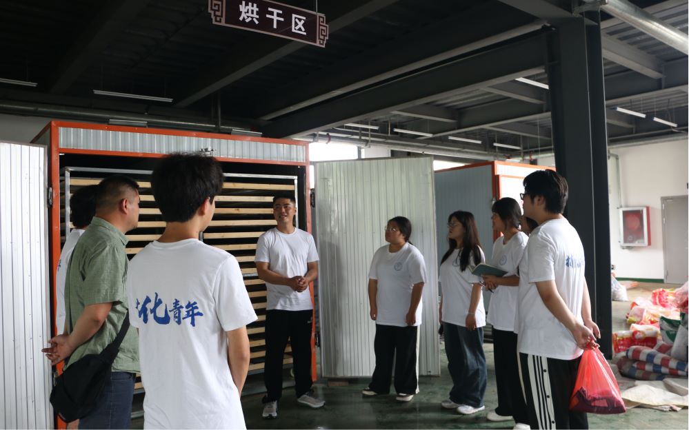 在安徽楠沐生态农业有限责任公司,负责人张军向团队成员介绍了公司运营情况,讲述自己的创业经历和金银花等中草药的种植、生产、深加工及销售等工序。团队成员在实地参观八角塘村楠沐中草药基地后纷纷表示,此次参观不仅将专业课堂搬到了田间地头,让大家对中草药知识有了更加直观的了解,也让团队成员们看到了毛坦厂青年扎根基层、助力家乡发展的精神,学习了八角塘村结合绿色产业赋能乡村振兴的实践探索道路。