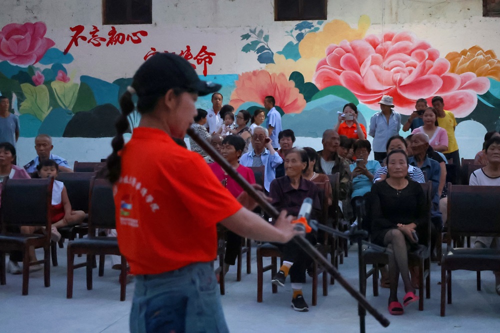 演出虽落幕,但故事远未结束。在为期十天的实践活动中,实践团成员们不仅带来了这场视觉与听觉的盛宴,更以实际行动践行了乡村振兴的使命。他们无偿为村庄绘制了色彩斑斓的文化墙,让昔日单调的墙面焕发出勃勃生机;开展美术支教,激发孩子们对艺术的热爱与追求;组织村民参与漆扇艺术体验,传承与发展非物质文化遗产;同时,还进行了环保宣传讲座,提升了村民的环保意识,共同守护绿水青山。