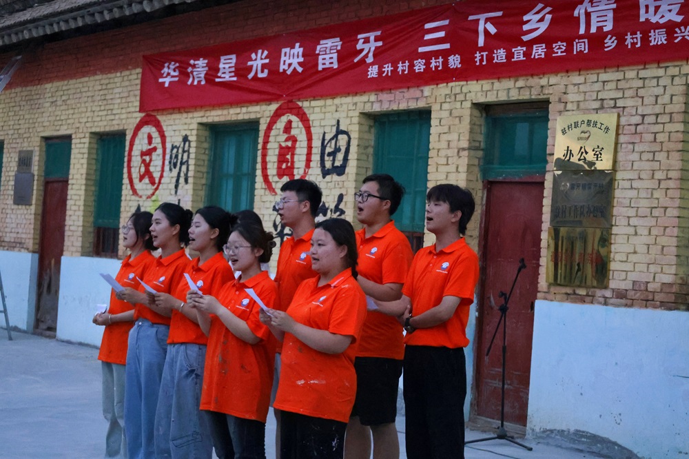 最后,双方在艺术汇演的欢声笑语中合影留念,定格了这难忘的一刻。这不仅仅是一次文艺演出的成功,更是艺术与乡村深度融合、青年力量与乡土情怀相互碰撞的生动实践。西安建筑科技大学华清学院艺术与设计学院的学子们,用他们的青春与才华,在雷牙村这片热土上留下了深刻的足迹,也为乡村振兴的宏伟蓝图添上了浓墨重彩的一笔。