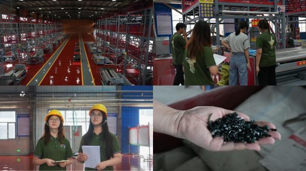 随后,实践团成员深入金曜塑业生产车间,亲眼见证地膜生产线与废弃地膜的转化技术。金曜塑业不仅致力于农用地膜的生产,更积极探索废弃地膜的回收利用。金曜塑业严格按照"谁供膜,谁回收;谁污染,谁治理"的原则,投资7600多万元建设了废旧地膜回收加工基地,打破了以往残膜补贴补给加工企业的固有模式,将所有政府补贴都给农户,带动当地农户积极参与"白色污染"防治工作,实现废旧资源再利用及农户二次增收的多重效果,为西吉绿色发展贡献企业力量。