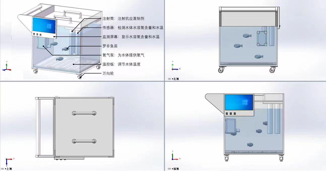 除了想满足硬件上的需求,团队还考虑机器对渔民的友好性,加装了万向轮和伸缩推杆,既提高罗非鱼苗运输距离和运输存活率,还能避免渔民长时间频繁劳作从而超出身体负荷。