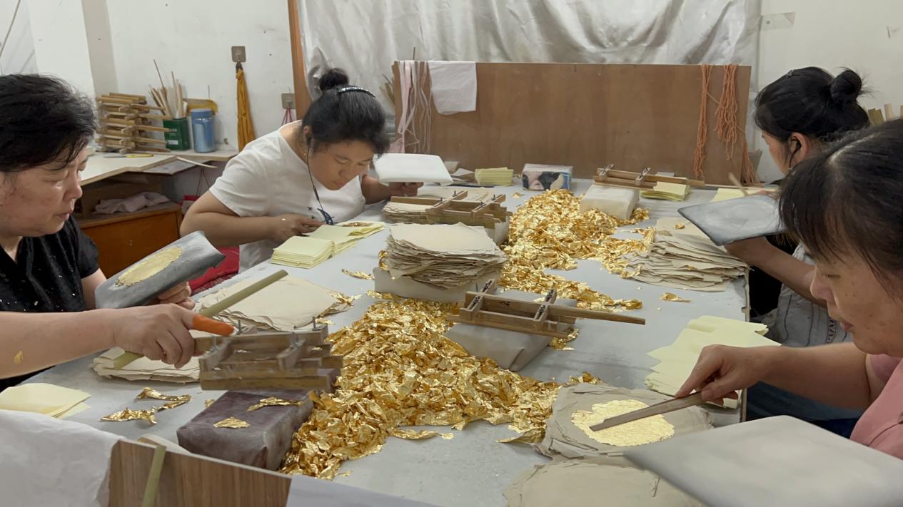 如今,王师傅已经退休,却依然关心这门非遗技艺的未来传承与发展。他坦言,随着时代的变迁,面临着非遗传承工作工资水平相对较低、工作任务繁重等挑战,愿意学习并传承传统手工艺的年轻人越来越少,这让他对金箔锻制技艺的未来充满了担忧。同时,他也对如何解决这个问题提出了自己的看法。他表示,要传承金箔技艺,年轻人和政府起到重要作用,要积极鼓励大学生制作、推广相关文创产品,使金箔年轻化,政府则要有计划地举办相关大型活动,以宣传推广金箔技艺,让金箔锻制技艺永不褪色、创新传承。
