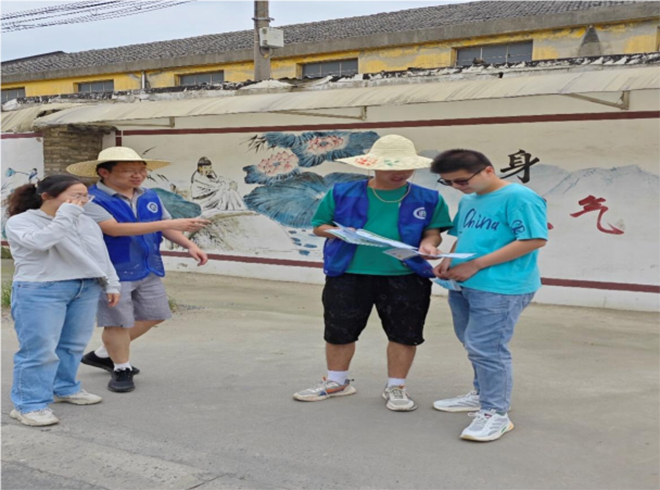 2024年7月3日上午,实践团队来到扬州市邗江区汊河镇冻青村进行实地考察调研,与当地村民进行友好交流,实践活动得到村委会的鼎力协助,经过调研走访,结合村委会的建议,确定了最终的绘墙地点、绘画主题和方案设计。