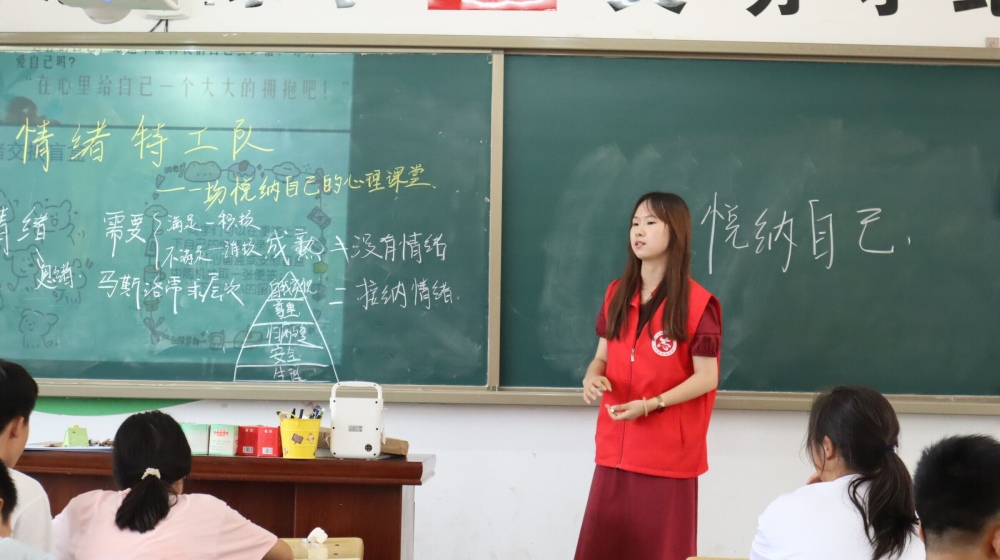 为关注青少年心理健康,帮助学生合理管理情绪、悦纳自我,从而增强自信心,引导形成积极向上的班级氛围,7月23日下午,南京财经大学信息工程学院“豫你偕行,烛光辉映”支教团队赴河南省新乡市辉县市南寨镇中心学校,开展了以“情绪特工队,一场悦纳自己的心理课堂”为主题的课程,以皮克斯电影《情绪特工队》为背景,带领学生与心交汇,走近自己、正视自己、悦纳自己。