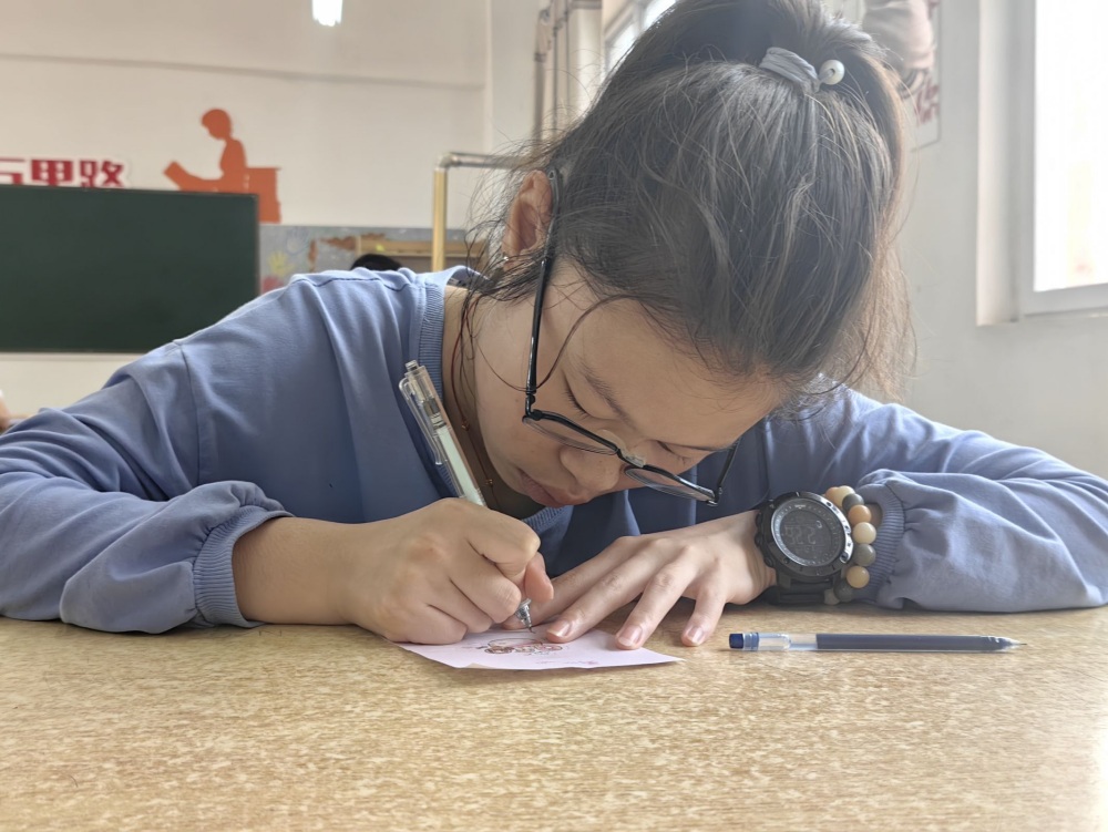 剖析情绪,不仅意味着正视关注自身的情绪,更意味着察觉、感知他人情绪。在课程结尾,彭老师精心设计了一场“情绪交换盲盒”的游戏,每个学生在便签上写下自己最近的情绪心事,投递到“开心盆”或“安慰盆”中,再随机抽取他人的情绪便签进行回复。在交换寄语的过程中,学生们乐其乐,飘逸写下昂扬向上的文字;而看见他人的忧郁心事,也会忧其忧,勾勒出大大笑脸,聊以慰藉。每位学生欣喜地接过他人给自己的回语,小心翼翼地展开,为他人共情暖心的留言而感到舒心。