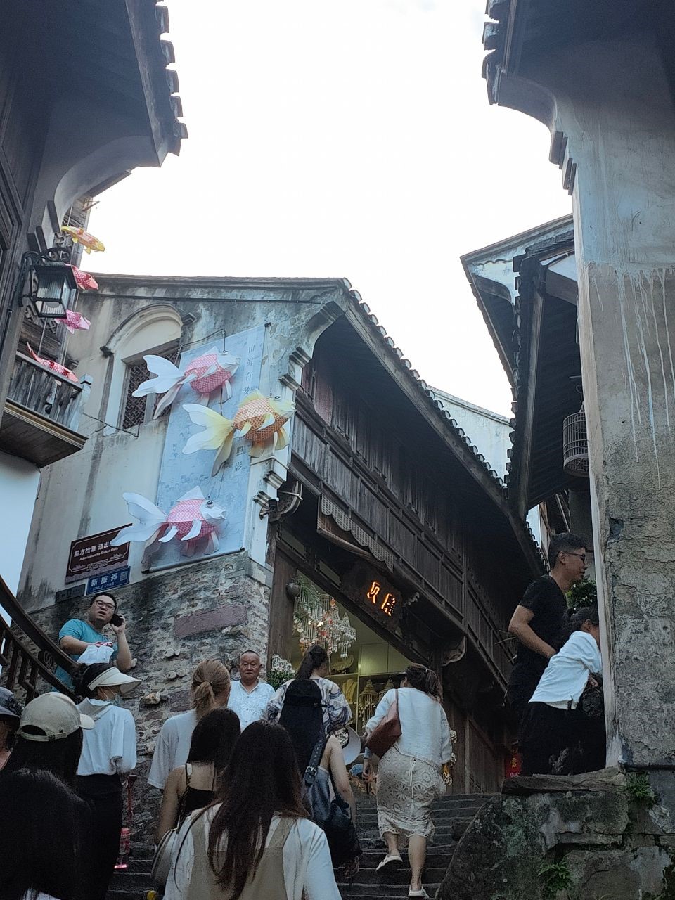 图为石浦古城一角,成员们参观时不忘发放问卷与了解相关文化。