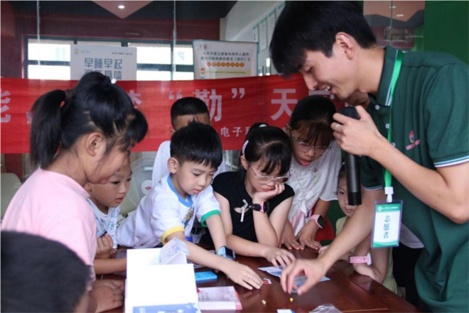 为深入学习宣传贯彻习近平新时代中国特色社会主义思想,贯彻落实习近平总书记关于教育的重要论述和关于语言文字工作的重要指示批示精神,加大民族地区、农村地区国家通用语言文字推广力度,服务铸牢中华民族共同体意识,助力乡村振兴战略。2024年7月17日电子科技大学成都学院工学院“工科赋能,筑梦勤天”社会实践服务团队共赴成都市温江区天乡社区开展“推普助力乡村振兴,共绘时代文明新风”暑期“三下乡”社会实践活动。