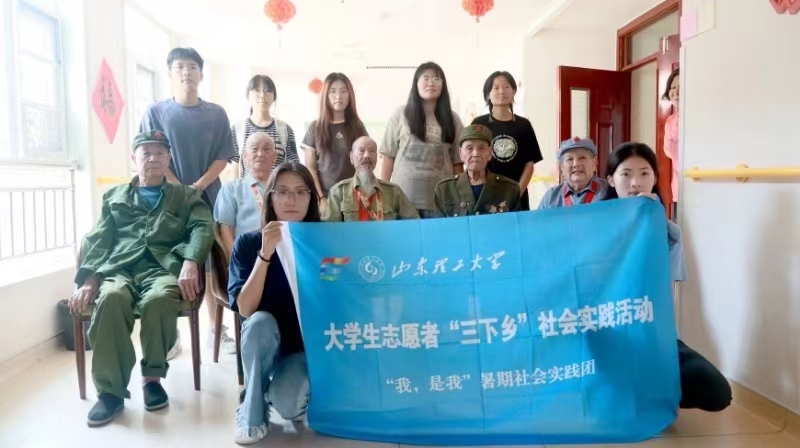 七月中旬,山东理工大学实践“我,是我”实践团在思政课教师的现场指导下开展了“赓续红色血脉,传承红色基因 ”为主题的暑期社会实践活动,前往山东沂南天河医养老兵照护中心看望慰问退伍老兵。