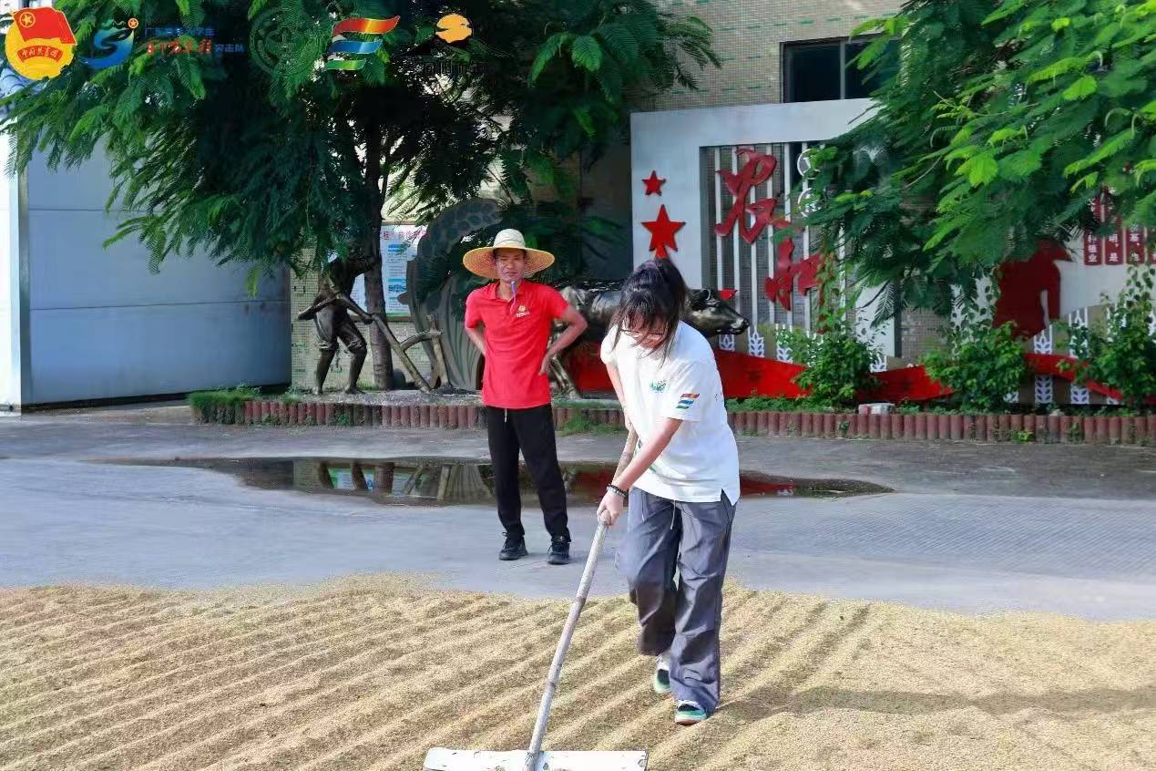 首先,实践队一行来到了广袤的麦田。金色的阳光洒在绿油油的麦浪上,一片生机勃勃。微风的吹拂,阳光的温度,让队员们想起这段时间的故事,感受到了当地农民和土地之间的情谊。随后,实践队参观了阳西丝苗米强农加工基地。这里,机器轰鸣,自动化生产线高效运转,将一粒粒稻谷转化为晶莹剔透的大米。队员们近距离感受了从田间到餐桌的全链条生产过程,对现代农业的智能化、自动化水平赞不绝口。加工基地的科技赋能,让队员们领略到了现代农业的无限风采。