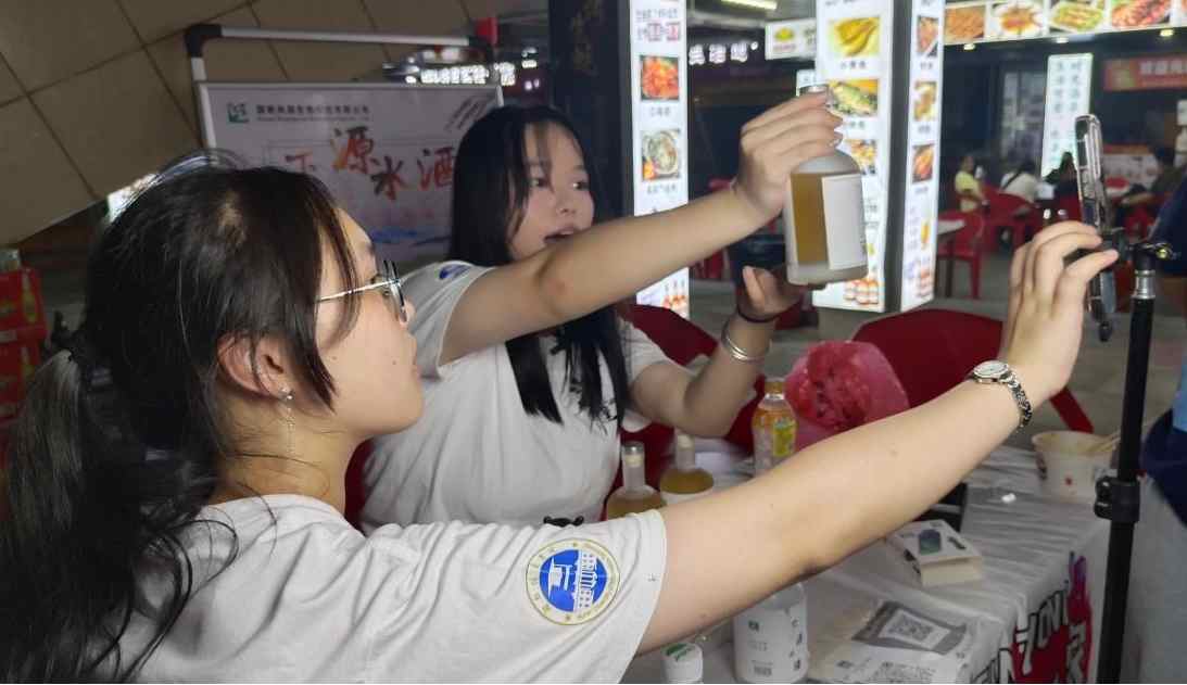 随着夜色渐浓,广场上的人潮逐渐散去,但团队的宣传并未停止。他们将阵地转移到了宵夜店和直播间,通过向宵夜店顾客介绍水酒以及免费品尝活动,让水酒的消费场景更加丰富,也希望借此让更多年轻人了解到水酒这一传统酒。同时,线上直播也取得了显著成效,团队成员们从原料、产地、口感等方面向直播间的观众详细介绍下源水酒,直播观看人数和评论互动的活跃度都有了显著提升。