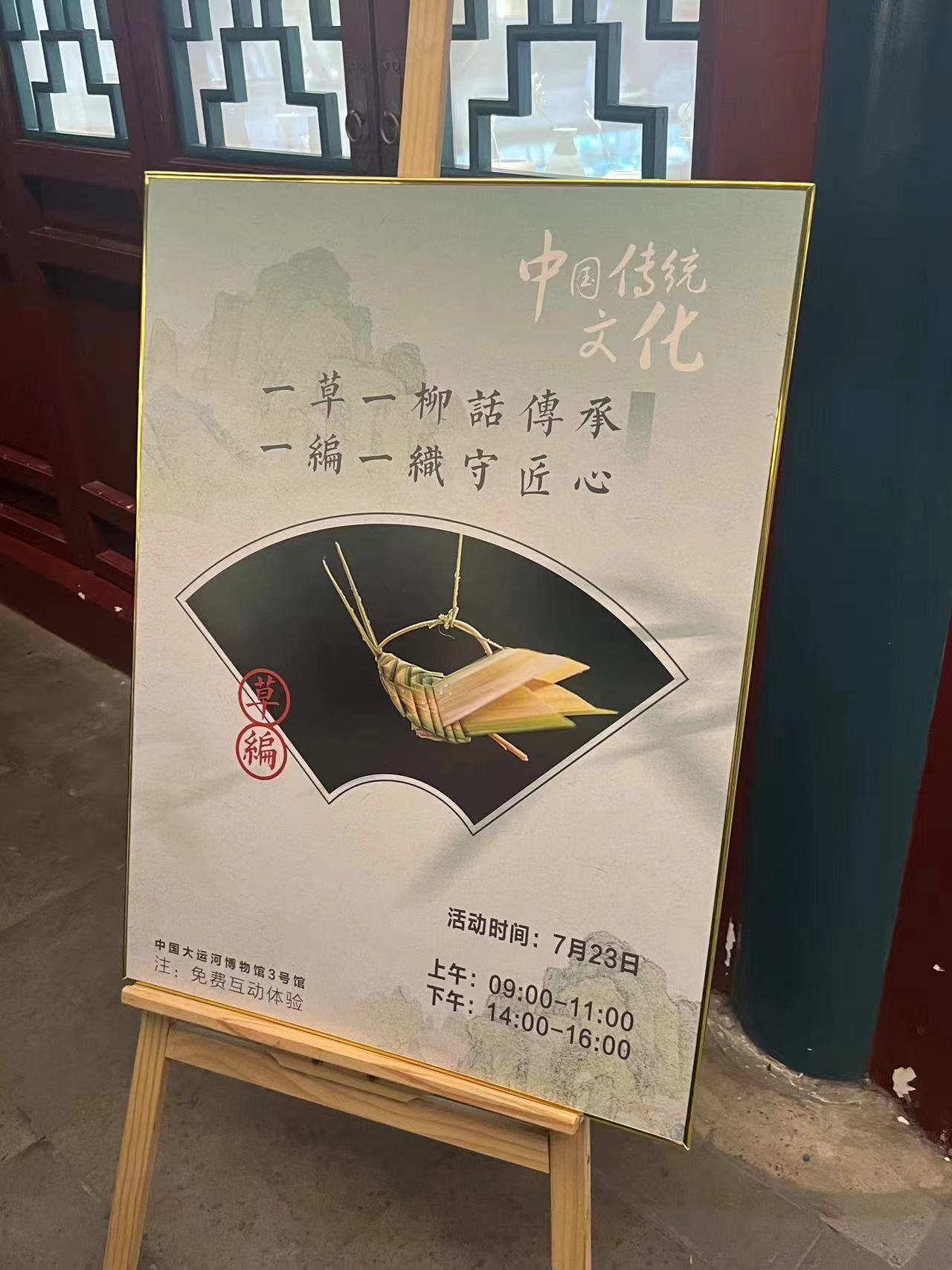 7月24日,我和队友强艺婧一同踏上了前往扬州大运河博物馆的旅程,参加了一次特别的非遗文化体验活动——草编技艺。在那个充满历史与文化氛围的地方,我们通过亲手体验草编技艺,仿佛让心灵得到了更深层次的触动和启发。