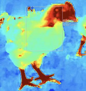 图为28日龄土鸡2号公鸡的红外热成像体温数据图
