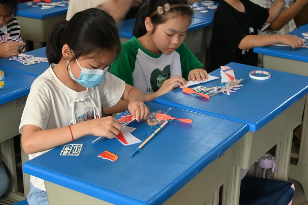 青春为中国式现代化挺膺担当,让志愿支教服务在边疆地区中。7月12日,旨在科普航天知识,点燃航天热情,南京航空航天大学电子信息工程学院“山里创‘芯’的孩子”社会实践团队在福建省福州市连江县明智学校开展了特色手工课堂活动——航模飞机的制作。