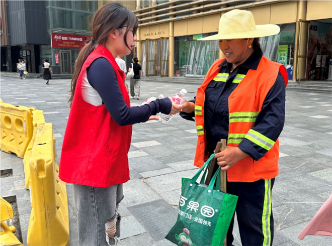 “夏日送清凉,关怀沁人心”暑期社会实践活动的顺利开展,不仅传递了温暖与关爱,更进一步营造了尊重劳动、关爱劳动者的良好氛围。青春不打烊,公益永不停,盐城师范学院外国语学院学子会持续地用实际行动为社会注入更多爱与温情,为建设美丽家园贡献自己的青春力量。