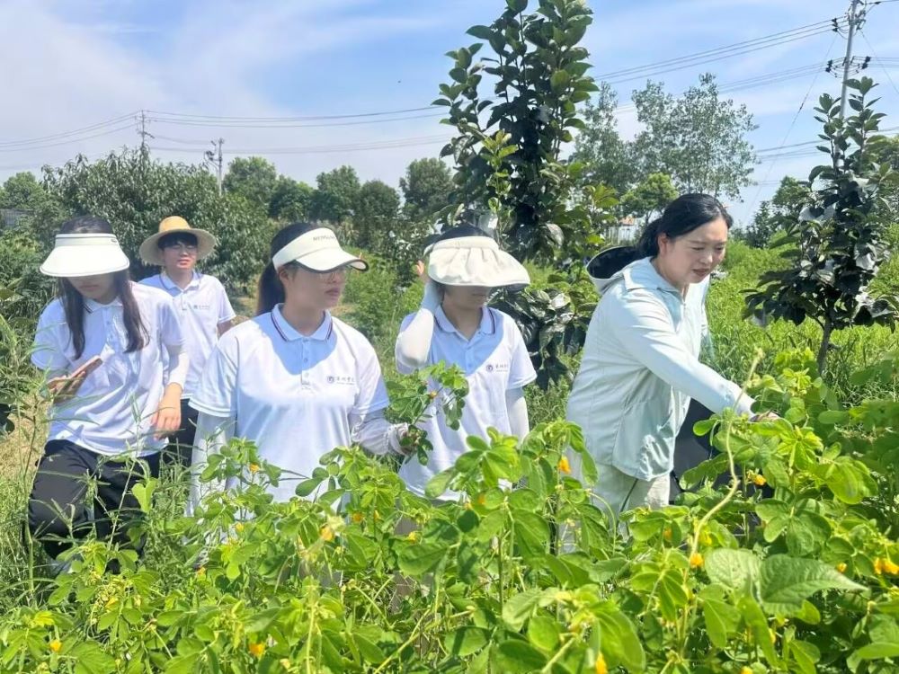 清晨,阳光初照。指导教师朱双双带领实践团队成员首先来到了公司展厅,企业负责人黄老师带领我们认识射干、金银花等植物,它们以根部或花瓣入药,具有良好的药用价值。此外,黄老师还提到通过对这些植物实施嫁接技术,嫁接长成的植物花期较长,同时具有一定的观赏价值。随后,黄老师与团队指导老师朱双双老师带领团队成员一起探讨几种草药的多种用途,如桑叶可用来制作茶饮,桑皮和黑桑椹具有药用价值,同时桑椹还可以用来酿造美酒,而皂刺作为一种药用植物,其刺具有治疗脓包的功效;花椒则具有不同于皂刺的独刺特点,内服外敷均可,如敷肚脐、泡脚等,同时也是常见的食品调料;金银花原色为黄色,通过嫁接技术可延长花期。但需要注意的是要将金银花与山银花区分开来,因为山银花的花粉多毛且有毒性;决明子则可用于治疗目赤等症状。在展厅学习结束后,实践团队成员前往巢湖市中垾镇雨龙家庭农场参观,该农场主要成员由退伍军人组成,以跟党走、听党话、种好药、种良心药为己任,种植了大量的仿野生中药材。团队成员通过实地对山楂树、金银花、决明子等植物进行考察认知,对药用植物和果树有了更直观的认识。至此,本次活动圆满结束。