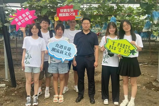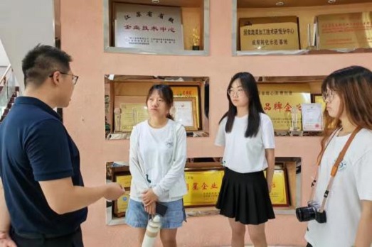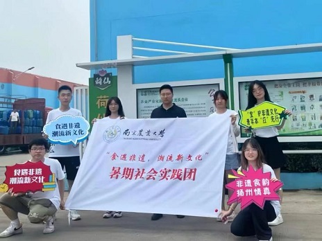 7月10日,南京农业大学食品科技学院“食遇非遗,潮流新文化”暑期社会实践团在广洋湖镇团委书记、经济发展局副局长梁文彬的带领下走进扬州市宝应县广洋湖镇进行参观学习。