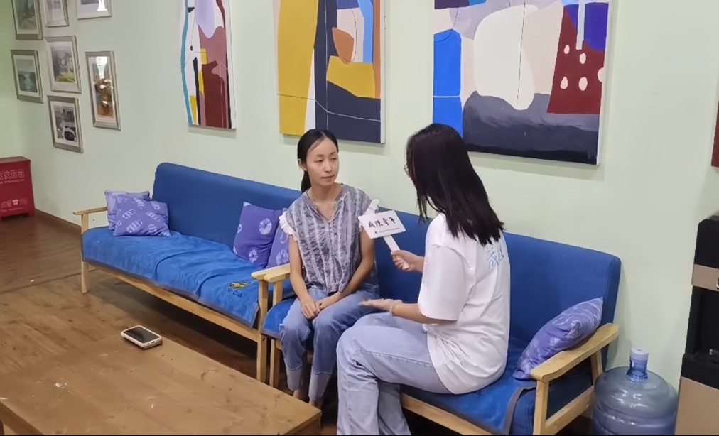 图为实践队成员对机构人员进行采访。施寒 摄
