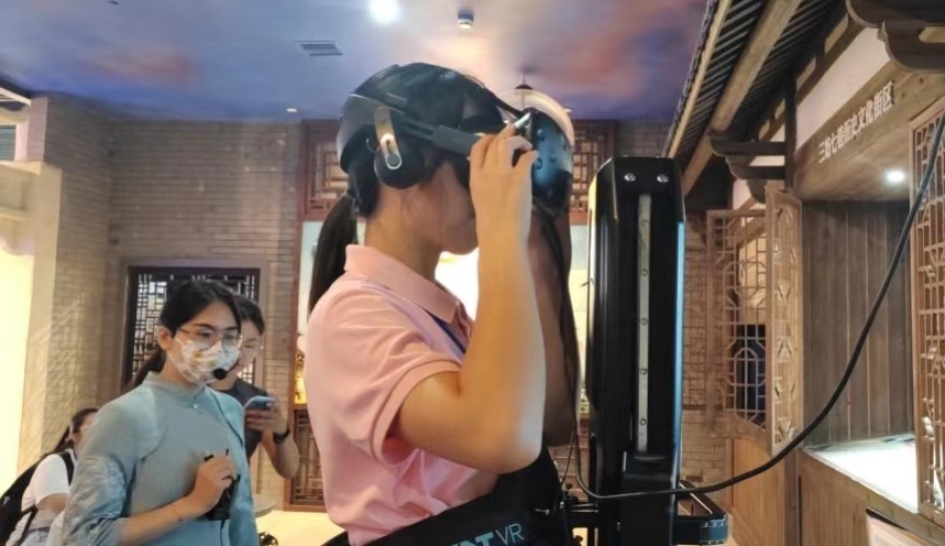 (实践队成员在福州城市规划馆内体验VR技术)