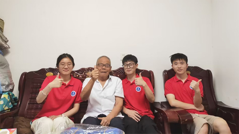 图为图为“薪火筑梦,医路乡阳”社会实践团队成员在随访过程中与老人的合影。