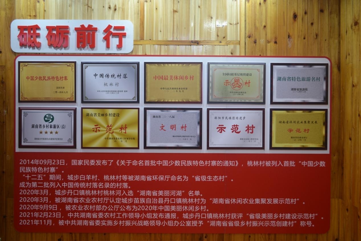近年来,桃林村村支两委在上级统战部门的精心指导下,在县委的坚强领导下,在丹口镇党委的大力支持下,积极整合统一战线的资源力量,扎实推进同心美丽乡村建设,带动全村经济社会全面发展,逐步将桃林村打造成为布局美、产业美、环境美、生活美、风尚美的同心美丽乡村。2021年度,桃林村被市委统战部授牌为市级“同心美丽乡村”称号,以省“3521”创建工程为抓手,由乡镇监督村支两委主抓,党员干部带头建立自上而下的长效机制保证村容村貌整洁,村容村貌焕然一新,累计争取资金5000万余元,实施道路建设,水利公共服务设施,旅游配套设施等项目,基本实现了“布局美,产业美,环境美,生活美,风尚美”。建立“农户——联户组——村民小组——村党支部”四级工作网络,成立支援志愿服务队、乡贤会进一步完善村规民约,切实形成同心美丽乡村建设工作全民参与,同心美丽乡村建设成果全民共享的工作格局。2019年,桃林荣获“省级文明乡村”称号。