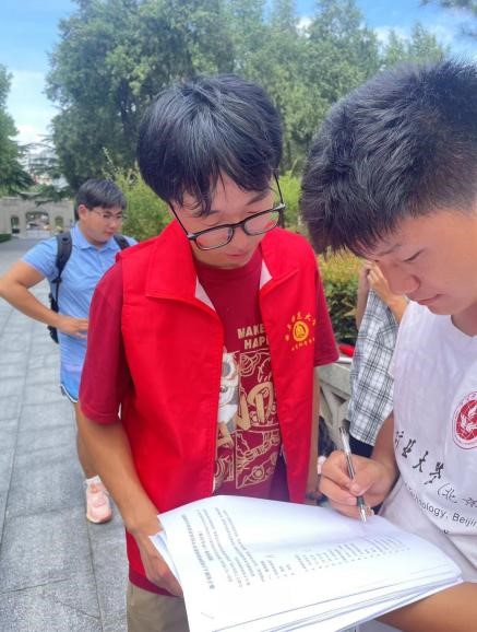 (通讯员,高明鑫 高玉斌)2024年7月25日,为贯彻落实万名学子返家乡,教育强国大调研活动、开展党的理论政策宣讲、传承和弘扬中华优秀传统文化、考察乡情民情,使青少年群体感受传统文化魅力,激发学习传承中华优秀传统文化的兴趣,曲阜师范大学体育科学学院“忘来路,踏新程”暑假社会实践队于临沂奔跑吧俱乐部开展武术教学,调查问卷填写。