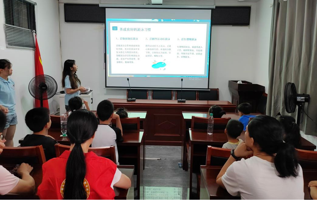 夏季是溺水事故的高发季节,特别是青少年群体因安全意识不足、自救能力不强,成为溺水事故的高发人群。2024年8月1日,江西财经大学“情暖童心,筑梦瑞金”暑期实践队走进瑞金市象湖镇中山路新时代文明实践站,开展“不做孤泳者”防溺水安全教育主题活动,此次活动旨在提高公众尤其是青少年的安全意识,预防溺水事故的发生,得到了社区居民的大力支持。