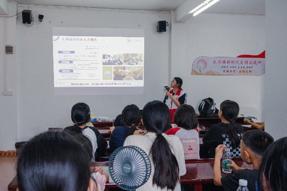 在当地政府的大力支持下,开营仪式顺利举行。突击队队员吉兰向大湾镇学子们介绍了突击队的概况,并结合自身在广东工业大学自动化学院求学的经历展示了大学生活的精彩之处,吸引了现场学子们的目光,激发了他们对未来大学生活的无限憧憬,悄然种下一颗大学梦的种子。