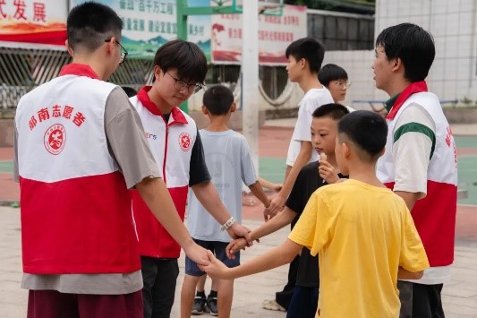 图4、5|突击队成员与大湾镇学子进行游戏互动