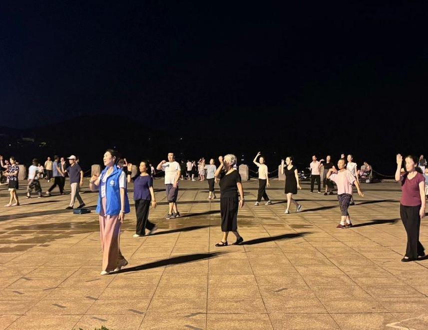 图为社会实践队走进社区广场,开展了一场“戏曲广场舞”活动,不仅传播了戏曲文化,还为居民提供了一种全新的健身方式,此次活动体现了戏曲和“体”育相结合。王丽婻 供图