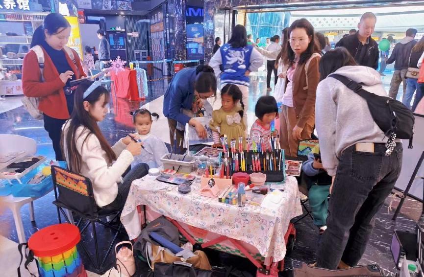 图为社会实践队来到社区举办了一场戏曲彩绘活动,通过彩绘德方式使居民们对戏曲文化有了更深层次德了解,此次活动使得戏曲与“美”育相结合。徐宁 供图