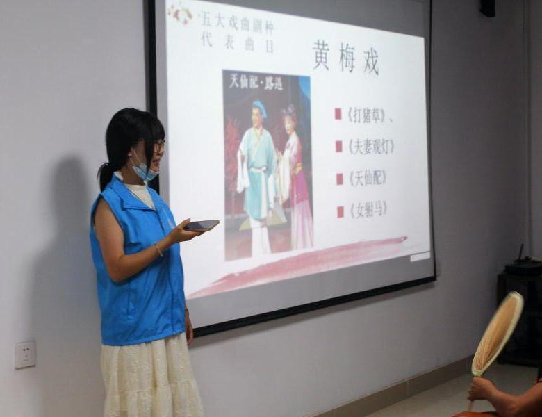 图为社会实践队员在聊城市开发区智慧养老服务中心开展戏曲文化科普活动,将戏曲文化通过生动有趣的幻灯片的形式丰富老人们的精神文化生活,温暖老人们的心灵,发扬中华优秀传统美德中尊老爱幼的精神,此举旨在发扬戏曲文化与“德”育相结合。 高川