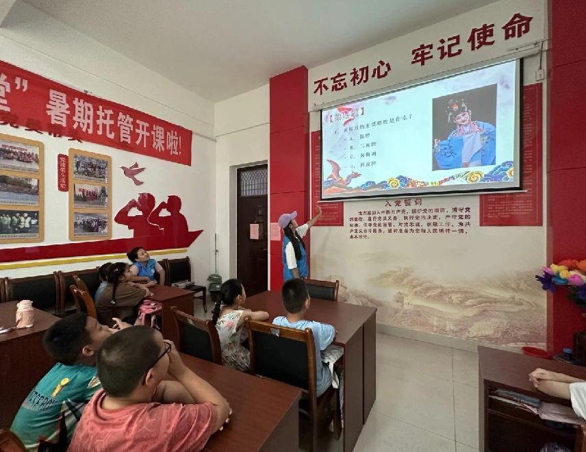图为社会实践队在广饶县乐安街道凯泽社区举办的一场戏曲知识竞赛,这场别开生面的知识竞赛激发起了儿童对于戏曲的兴趣和探索精神,并增加了对于民族文化的自豪感和认同感,旨在体现戏曲与“智”育相结合。高川