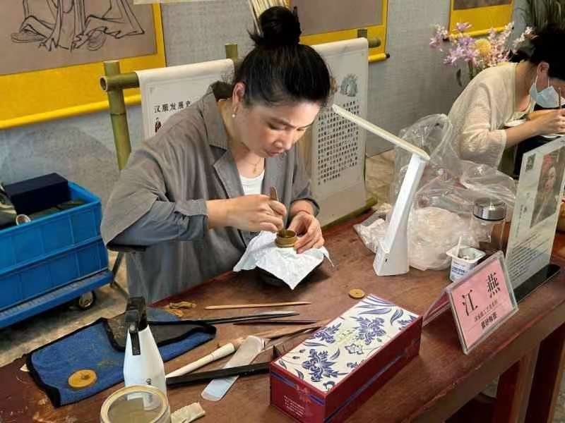 此外,实践队员还从江燕大师那里了解到,为了应对新时代给予的挑战,宜兴的紫砂壶工匠和文化工作者正在努力探索创新适应时代发展的传承方式。例如,通过建立工艺协会、学院和传承基地,鼓励年轻人学习和掌握紫砂壶的制作技术。此外,利用新媒体技术和现代设计理念,开发新的产品线,使紫砂壶更加符合现代生活,从而吸引更多的年轻消费者。