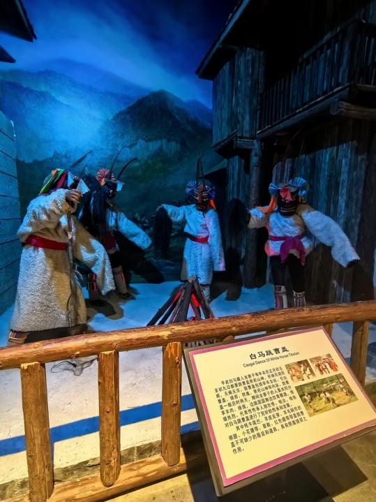 图为绵阳博物馆内的“白马跳曹盖”展区。中国青年网通讯员 胡欣怡 摄