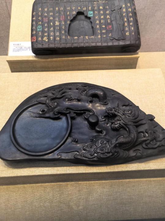 接着,实践队员参观了“雾山石刻”展区。作为四川三大石刻艺术瑰宝之一,雾山石刻以其独特的艺术魅力和深厚的历史底蕴吸引了无数文化爱好者和历史研究者的目光。这些作品大多分布于江油市武都镇和中坝镇,所用石材色黑如墨,质地细腻温润。石刻内容或细腻刻画花鸟鱼虫,栩栩如生;或大气描绘人物山水,意境深远。每一刀一划,都凝聚着雕刻师们的心血与智慧,展现了他们精湛的技艺和深厚的艺术功底。雾山石刻的制作工艺之复杂,更是让实践队员们叹为观止。从采石到成品,需要经过数十道工序的精雕细琢,包括开型、出坯、绘样、雕刻、镶嵌、题诗、落款、收细、打磨、抛光等,每一环节都充满了匠人对艺术的极致追求和无限热爱。这种对细节的严格把控和对完美的不断追求,让雾山石刻成为了不可多得的艺术珍品。雾山石刻不仅是历史的见证者,更是艺术的传承者。它们以独特的艺术语言,讲述着古老的故事,传递着文化的力量。