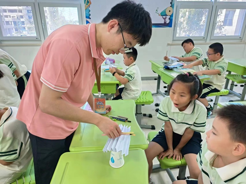 随后,实践团成员便带领同学们亲自动手参与了整个实验过程,同学们也仿佛化身为了小小科学家,积极讨论、认真操作,空气中弥漫着探索未知的热情与兴奋。课桌上,孩子们通过各种实验材料创造出了众多神奇的现象,他们积极参与,勇敢尝试,享受在实验中发掘科学奥秘的乐趣。