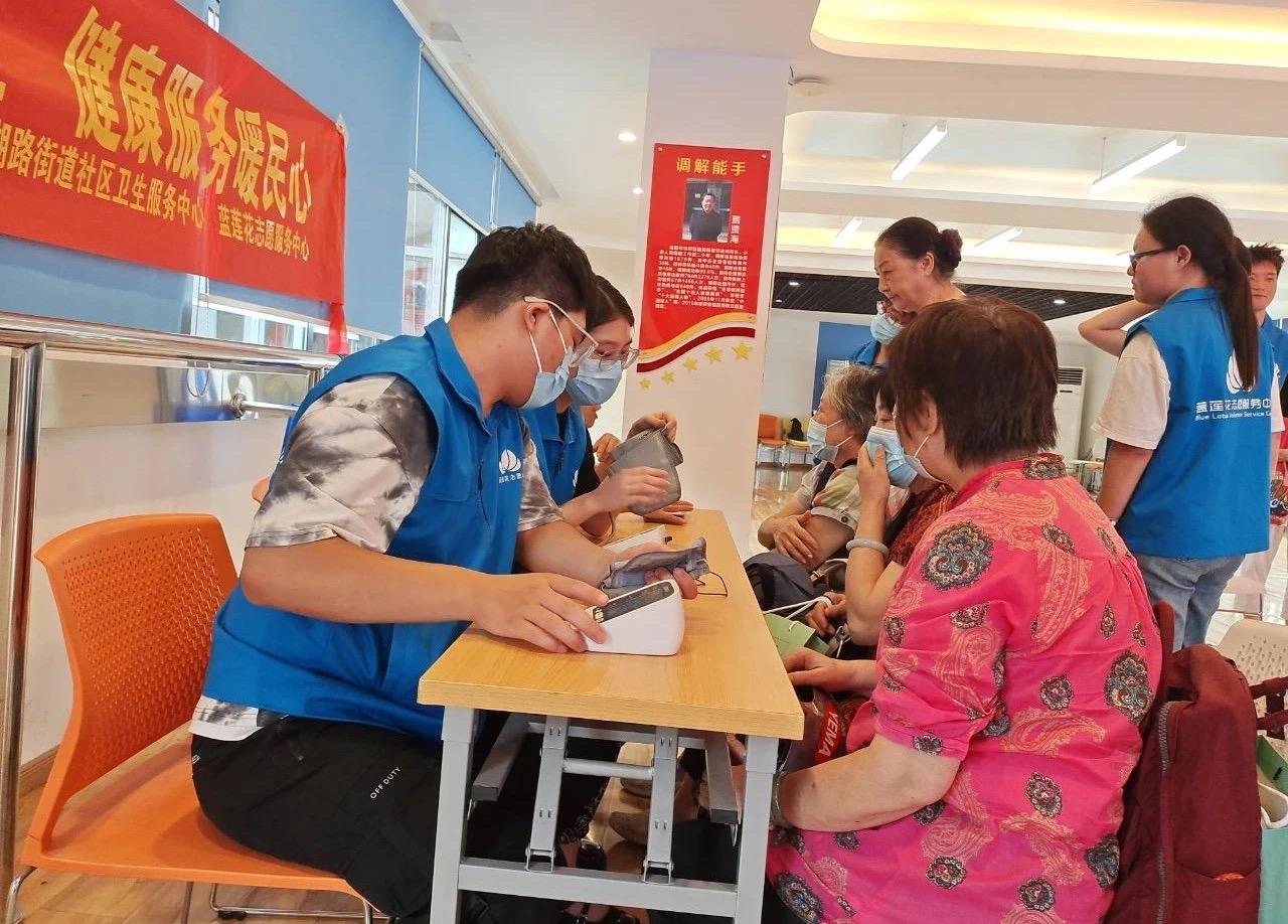 图为学校志愿成员在现场帮大家进行血压测量和养生建议等服务。 吴思远 拍摄