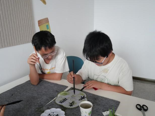 拓印结束后,小朋友们用墨水在扇面上进行装饰,合作完成最后作品。这些作品不仅体现了学生们的艺术才华和创造力,更传递出了他们对传统文化的热爱和尊重。