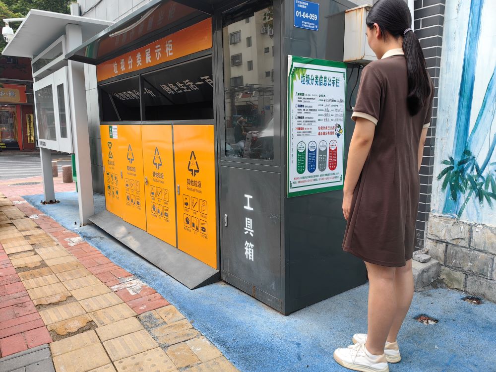 团队成员查看社区垃圾分类情况
