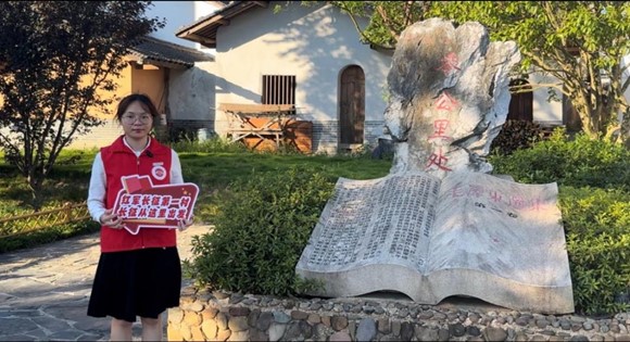 (图为实践队的队员在中复村录制《红军长征的光辉起点——中复村》主题思政微课,用当代青年喜欢的方式传播、弘扬长征精神。)