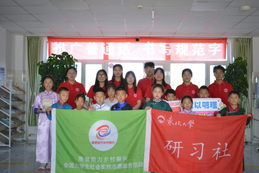 为深入贯彻习近平总书记关于语言文字工作的重要指示精神,铸牢中华民族共同体意识,促进各民族青少年深入交流交融交往。2024年8月,东北大学马克思主义学院东风化雨社会实践团前往内蒙古赤峰市走进内蒙古自治区赤峰市乌丹第六小学开展系列活动,以“明德 求是 包容 笃行”的院训精神为指引,以青春力量推动中华民族共同体建设,让校园内充满美妙的华夏之音。