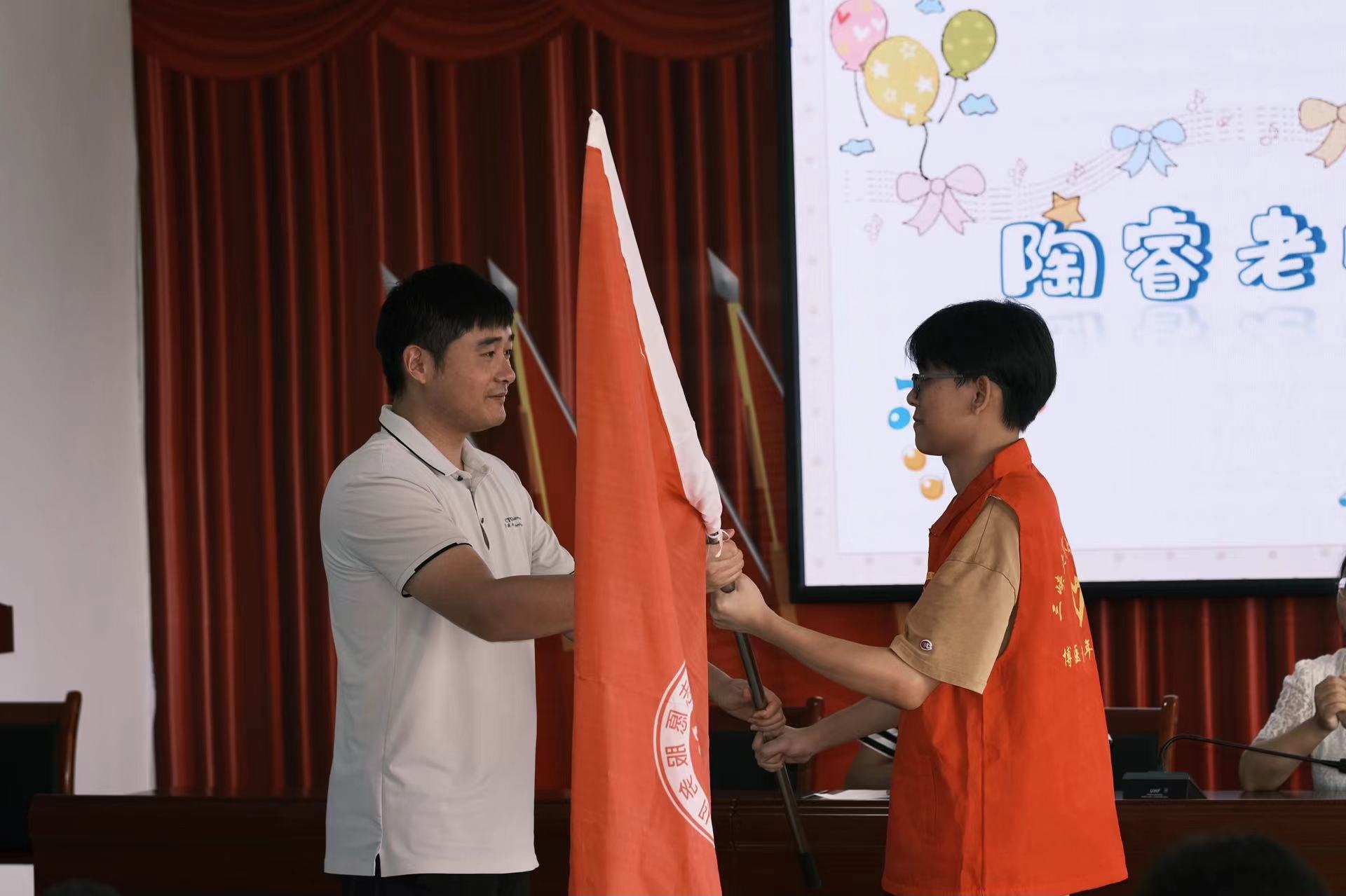 2024年8月10日上午,开班仪式如期举行,驿马冲村曹书记肯定了团队上一期寒假学堂的成效,并对三峡大学领导和志愿者的到来表示热烈的欢迎。三峡大学基础医学院专职团干邹老师对本次活动提出了“更安全,更有趣,更有意义”的要求,三峡大学体育学院专职团干陶老师为志愿者授旗,并给予了高度期望。